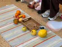 Para finalizar, los niños han ido formando la mesa del otoño con mucho entusiasmo. Después han imitado, con su cuerpo, los distintos movimientos de los fenómenos atmosféricos: lluvia, viento, tormenta, granizo… y han degustado distintas frutas y frutos de otoño.